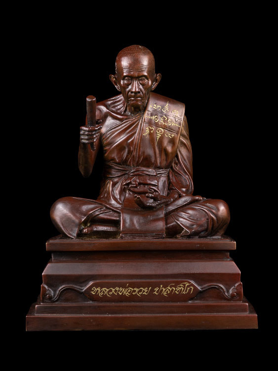 พระบูชา หลวงพ่อกวย วัดโฆสิตาราม ปี59 หน้าตัก 5 นิ้ว เนื้อทองเหลืองรมดำ |