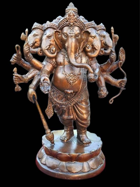 พระบูชา พระพิฆเนศ ปางพระปัญจมุขคเณศ มี 5 เศียร์ 10 กร เนื้อสำริด มันปู สูง 7 นิ้ว (สภาพสมบูรณ์ สวยเดิมๆ) |