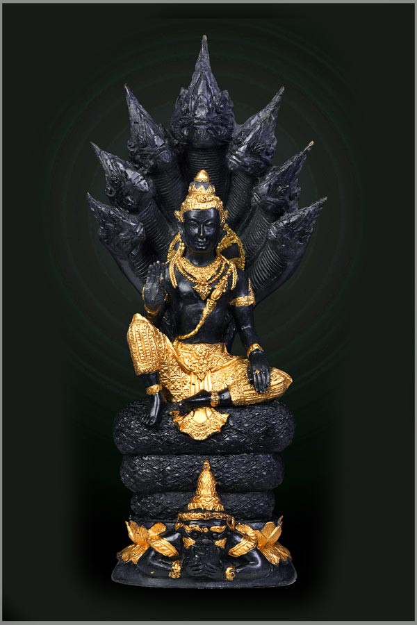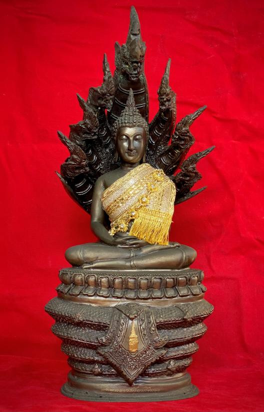 พระบูชารัชกาล ปางนาคปรก "หน้าตัก 3 นิ้ว" สูง 8 นิ้ว ก้นดินไทย ขอบหนา เก่า สวยๆ |