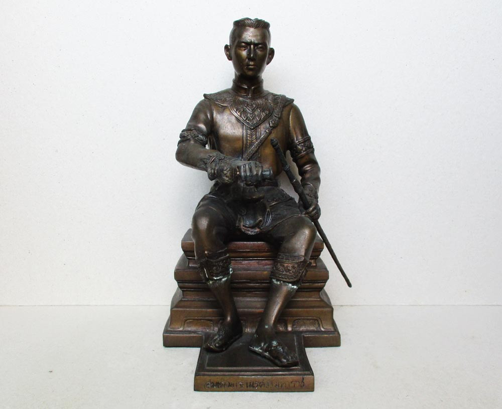 พระพุทธรูป ทรงเครื่องจักรพรรดิ์ เนื้อโลหะรมมันปู ปางสมาธิ |