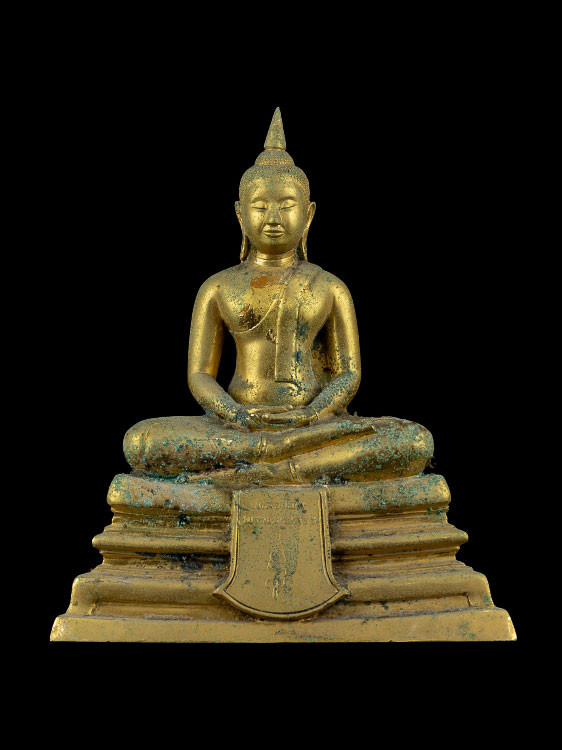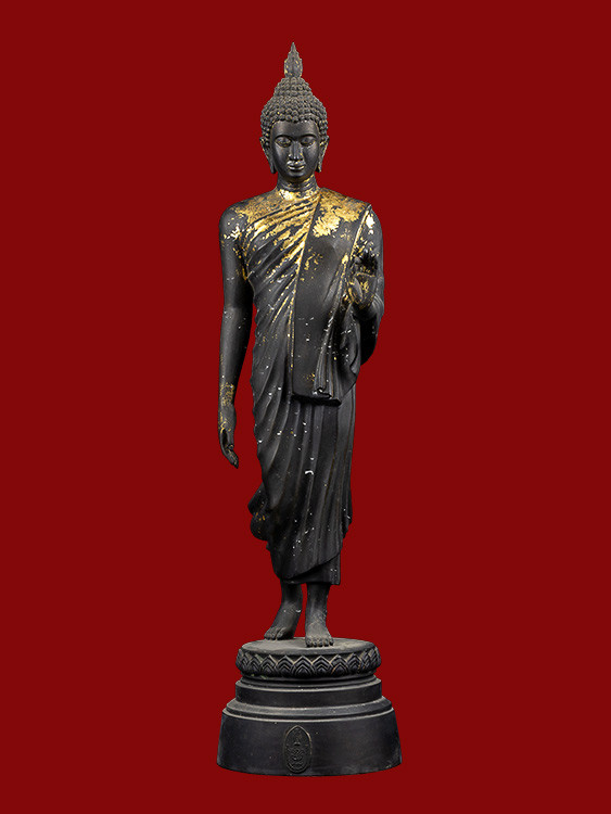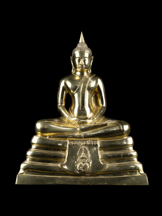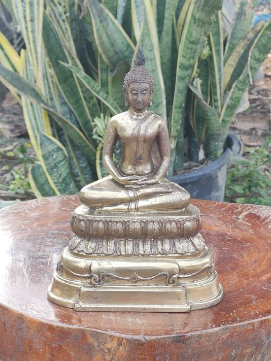 พระบูชาทรงเครื่อง ปางห้ามสมุทร สมัยรัตนโกสินทร์ เนื้อทองเหลือง |