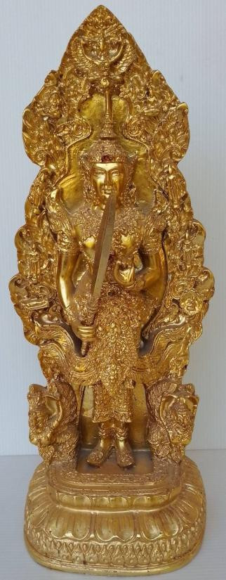 พระสยามเทวาธิราช จตุรเสนาสมาคม โคยพระบรมราชานุญาต ขนาดฐาน 6 x 4นิ้ว สูง 16 นิ้ว พระขรรค์ถอดได้ เนื้อเรซิ่น |