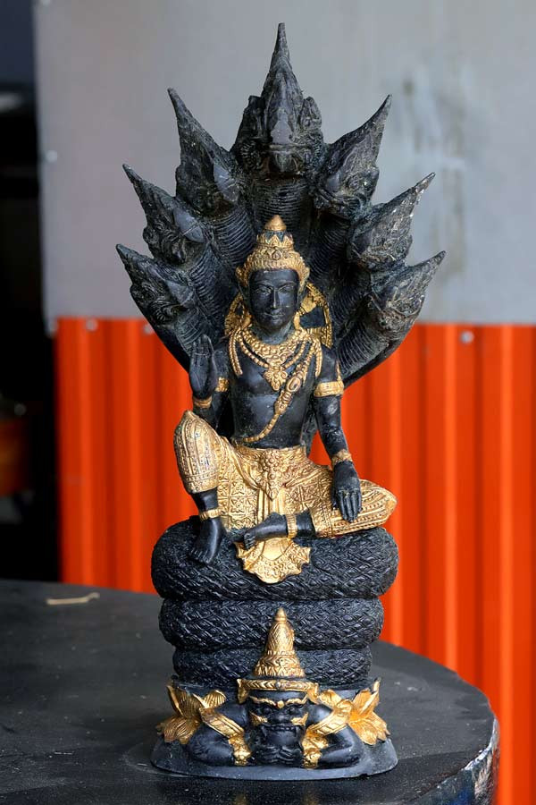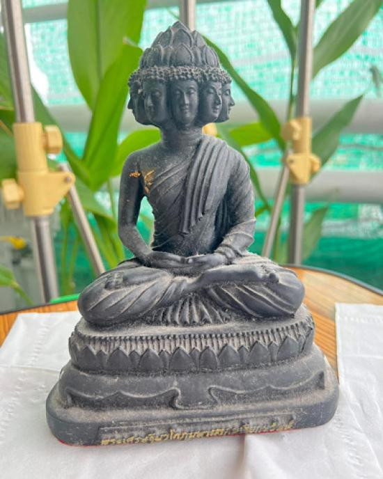 พระบูชา 9 หน้า พระเศรษฐีนวโกฏิเรียกทรัพย์ ขนาดหน้าตัก 5 นิ้ว เนื้อนิลดำ ผิวหิ้ง |