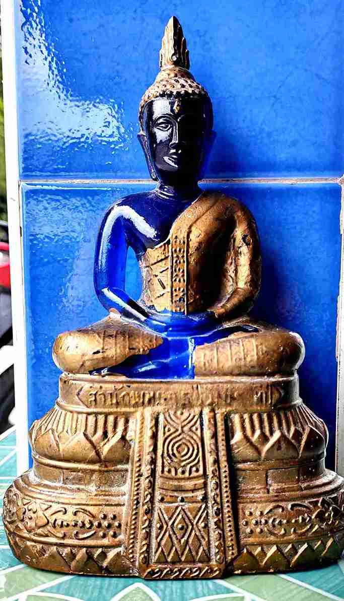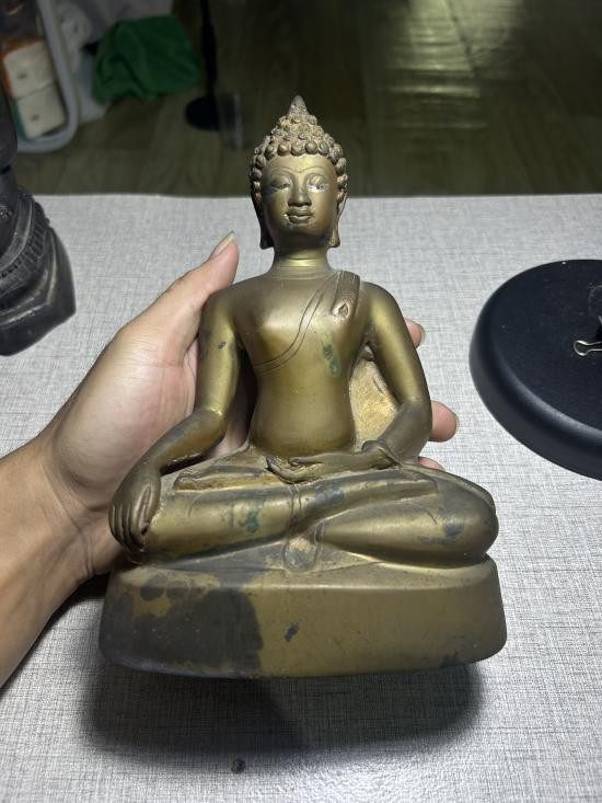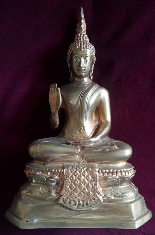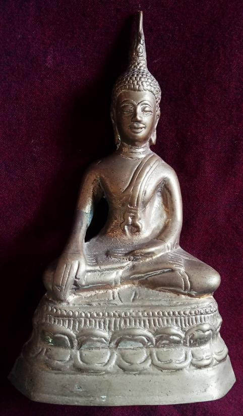 พระบูชาพุทธะเชียงแสนหน้าตัก 5 นิ้วสำนักฝึกจิตนิมิตธรรมของนครราชสีมาปี 2524 เนื้อโลหะ สูง 9 นิ้วจัดไปคับ |