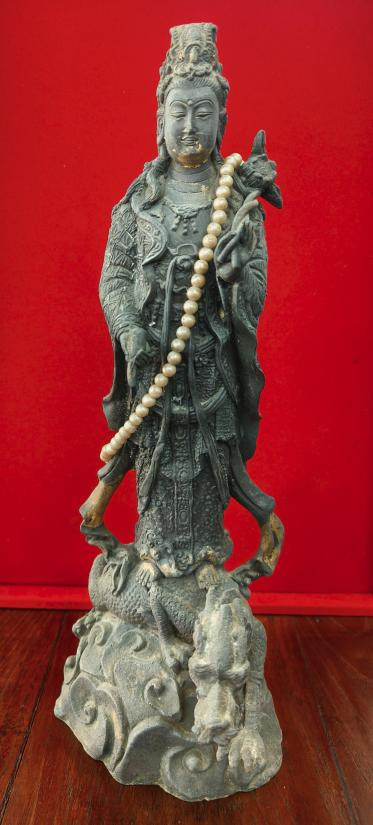 เจ้าแม่กวนอิมนั่งชันเข่า งานกระเบื้องกังไสเก่า สูง 18 นิ้ว |
