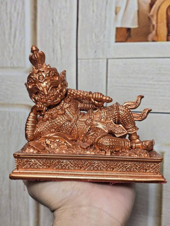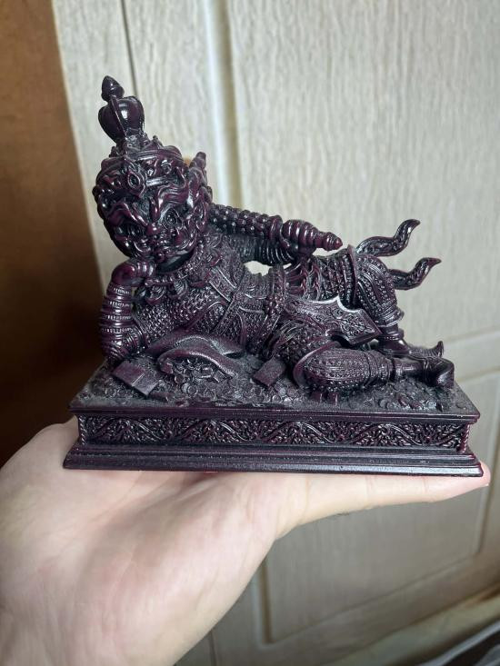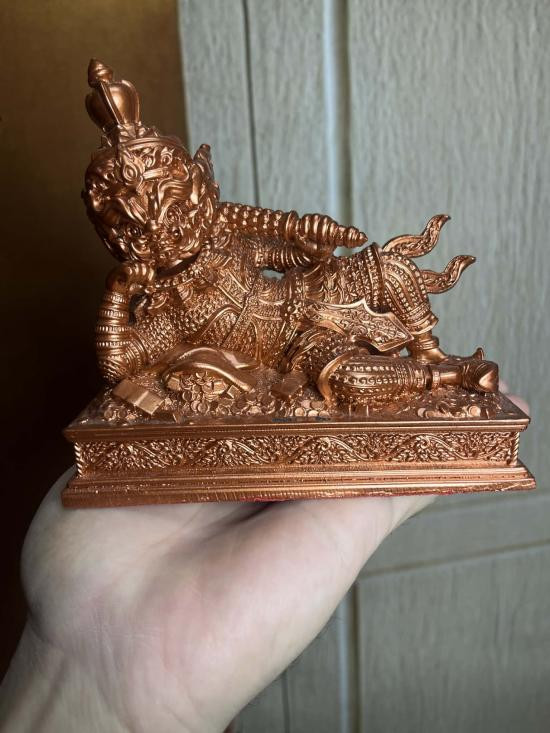แร่เหล็กน้ำพี้ งานวัด กุเวรน้อยปางนอนเสวยสุข พระอาจารย์เชษฐ์ วัดถวิลศิลามงคล กายเปลี่ยนสีตามอุณภูมิ พร้อมกล่องเดิมสูง 5.5 นิ้ว เนื้อแร่เหล็กน้ำพี้ แม่เหล็กดูดติดได้ |