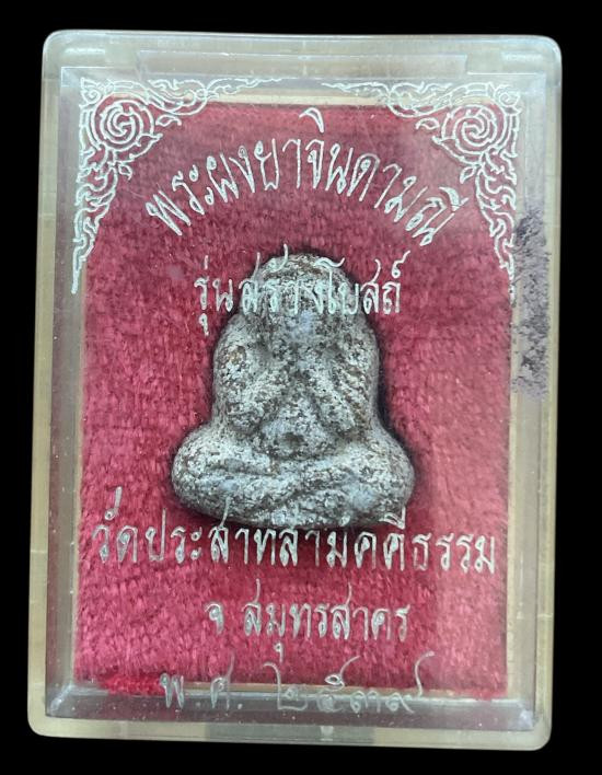 พระปิดตาเศรษฐีนาคา หลวงปู่บรรณ ฑีฆายุโก วัดภูด่านแต้ จ.สกลนคร วัตถุประสงค์สร้างโบสถ์ วัดหนองบุ่งฟ้า มีจาร กล่องเดิม |