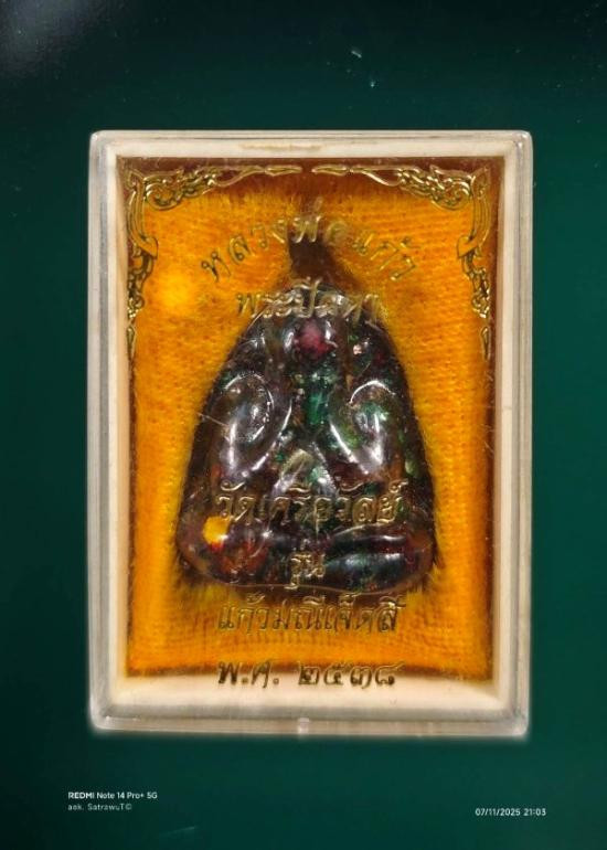 พระปิดตา รุ่นแก้วมณีเจ็ดสี หลวงพ่อแก้ว วัดเครือวัลย์ เนื้อพลอยเมืองจันทบุรี ปี 2538 |