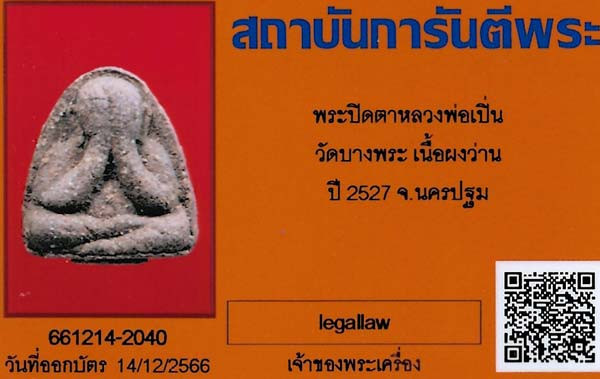 พระปิดตา หลวงพ่อเปิ่น วัดบางพระ เนื้อผงว่าน พ.ศ.๒๕๒๗ นครปฐม*300 |