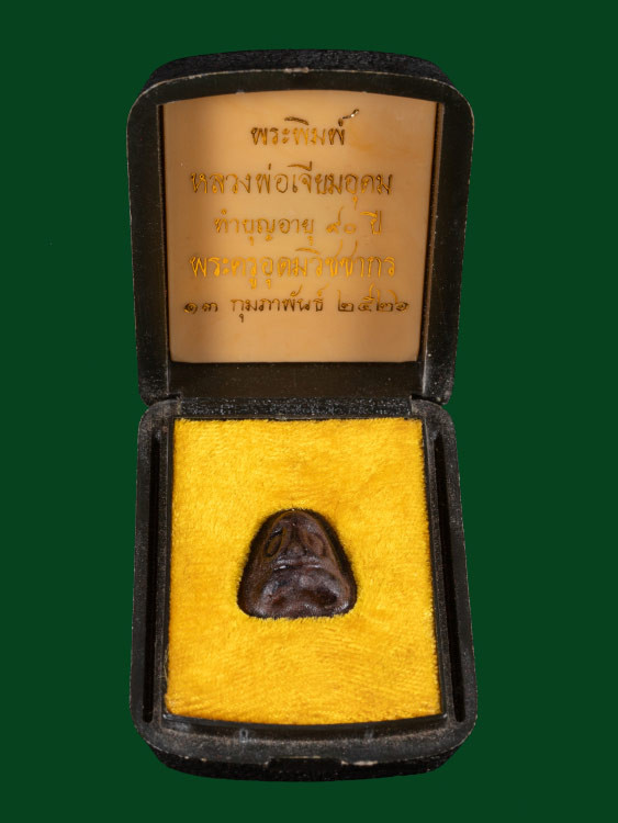 ***เคาะเดียว***พระปิดตา หลวงพ่อหยอด วัดแก้วเจริญ จ.สมุทรสงคราม เนื้อผง ลงทอง ล้อมเชือกไหมห้าสี พร้อมกล่องเดิม |