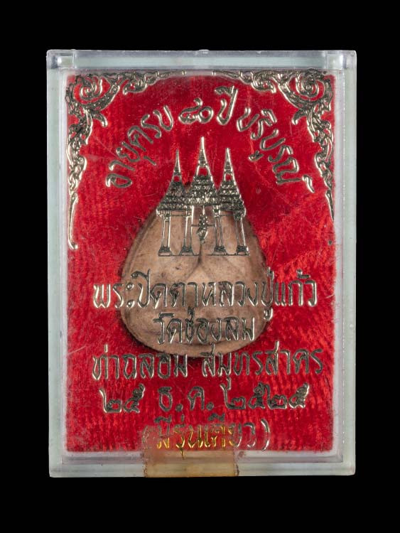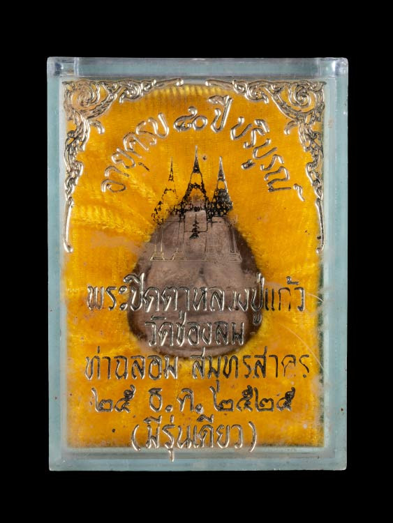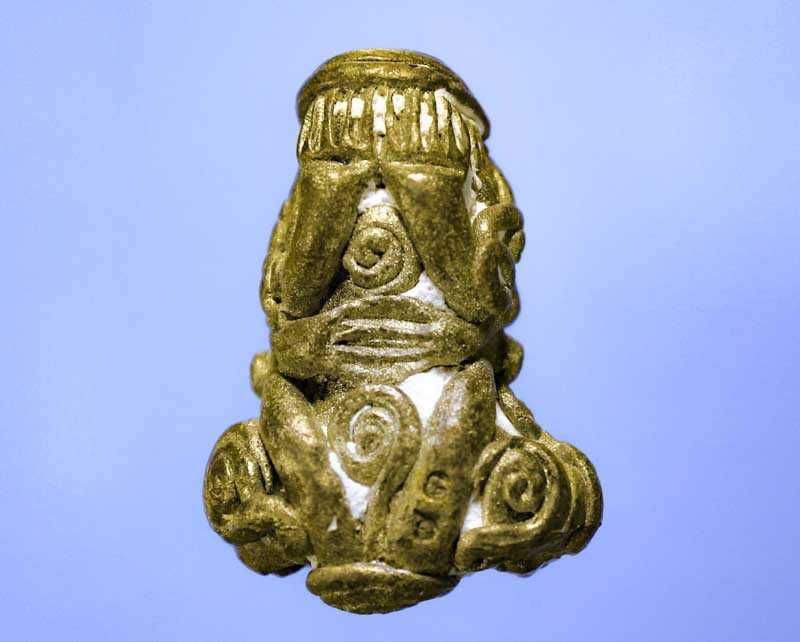 พระปิดตาหลวงพ่อแก้ว วัดเครือวัลย์ จ.ชลบุรี เนื้อผงคลุกรักปิดทอง รุ่นหลังคากุฏิ |