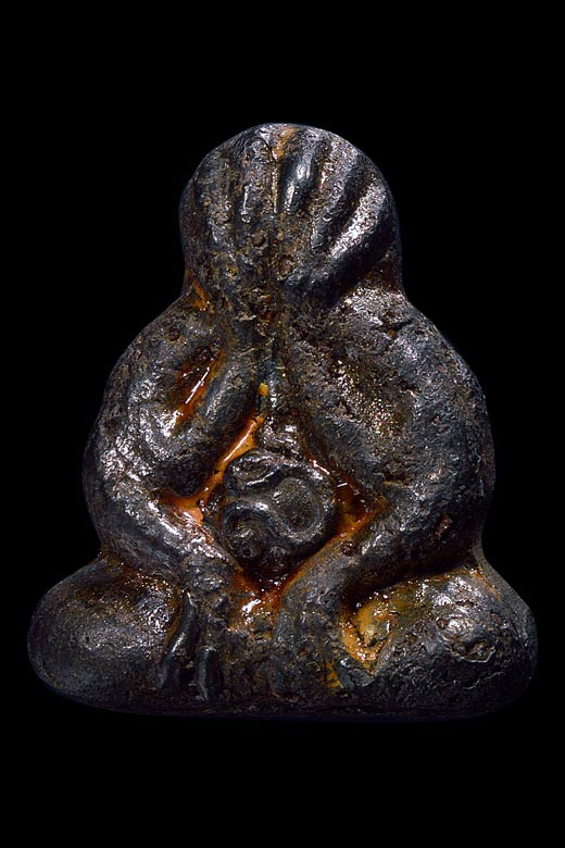 พระปิดตาเนื้อผงคลุกรักเก่าพอสมควรครับ |