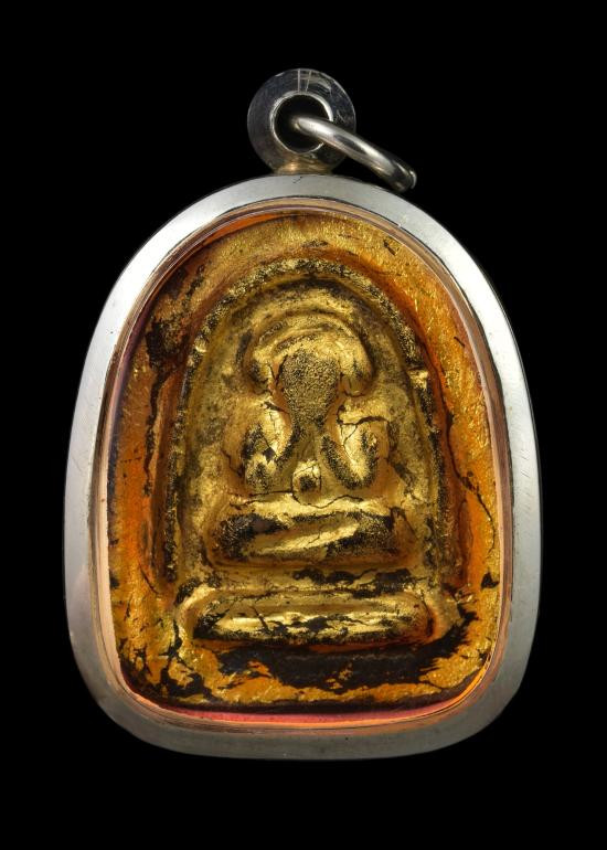 พระปิดตาหลวงพ่อแก้ว วัดเครือวัลย์ เนื้อตะกั่ว พิมพ์นิยม มาตรฐาน จับขอบเงินโบราณ เปิดหน้า-หลัง สภาพน่ารัก |