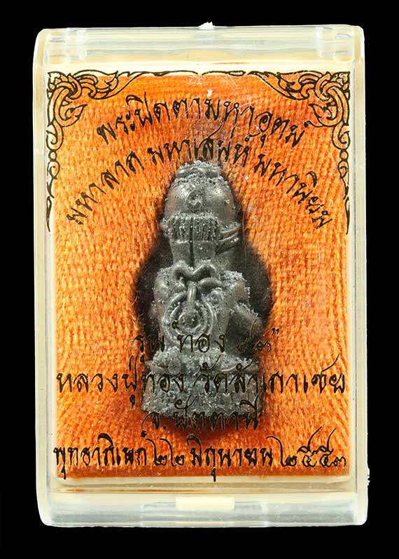 พระปิดตา รุ่น มหาอุตม์พิทักษ์ไทย หลวงปู่ศิลาและอีกหลายเกจิร่วมปลุกเสก 15 วาระ ออกวัดแจ้งใน จ.นครราชสีมา เนื้อขุนศึกศัตรูพ่าย ฝังพลอย ตะกรุดทองทิพย์ 6 ดอก หลังโรยพลอยนพเก้า นำฤกษ์ No.39 พร้อมกล่องเดิม |
