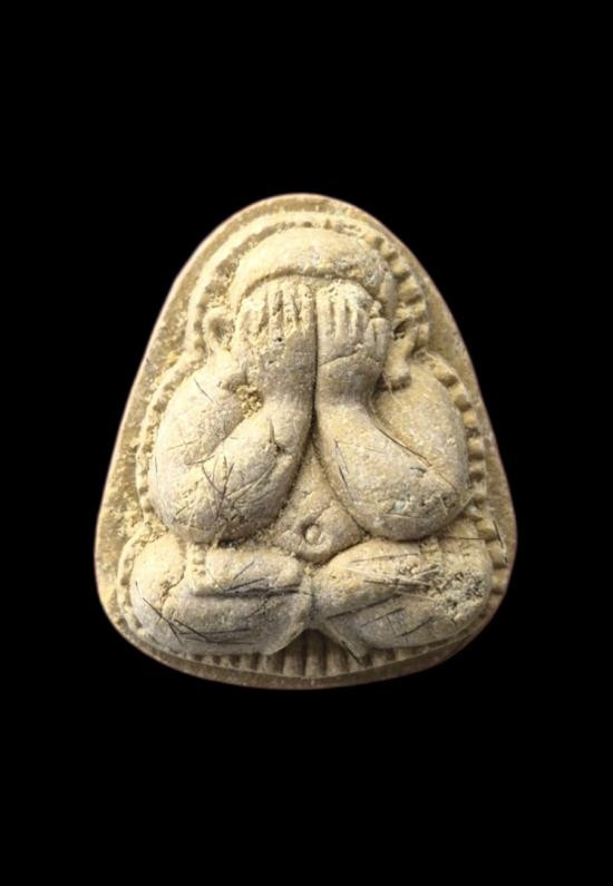 พระปิดตา เนื้อดิน หลวงปู่ทอง วัดราชโยธา กรุงเทพฯ พิมพ์กลีบบัวยันต์รอบสร้างปี2470 |