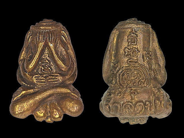 พระปิดตา รุ่นแรกหลังแบบ ปี 2503 หลวงพ่อโด่ง วัดนามะตูม เนื้อผงจุ่มรักปิดทอง สภาพสวย หายาก |