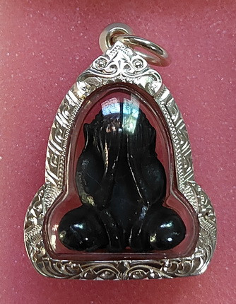 พระปิดตาหลวงพ่อดี วัดพระรูป เนื้อเมฆพัตร รุ่นเจริญเดี เลี่ยมเงิน |