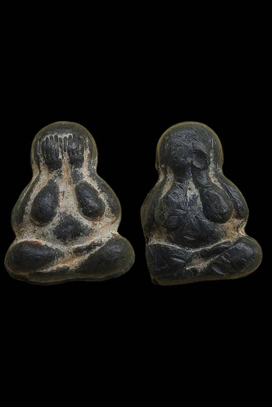 (2 องค์ มี 1 องค์ชำรุด )พระปิดตา หลวงพ่อน้อย วัดศรีษะทอง พิมพ์ 2 หน้าหลังอุ เนื้อตะกั่ว ปี 2478 |