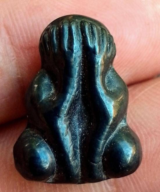 พระปิดตา พิมพ์ 2 หน้า เนื้อตะกั่วลงยาดำเดิมๆ หลวงพ่อเดิม วัดหนองโพธิ์ |
