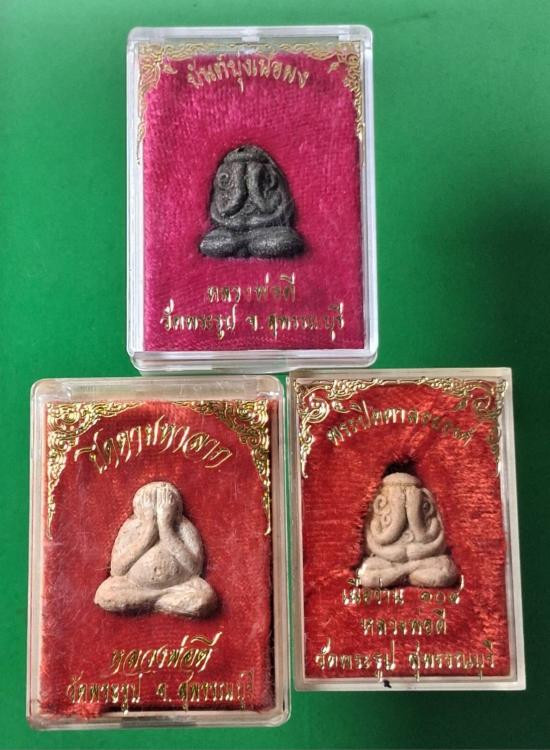 แบ่งปันรับพระ 3 องค์ ปิดตาจัมโบ้รุ่นแรก หลวงพ่อยิด วัดหนองจอก กุยบุรี จ. ประจวบ ฯ ปี 36 มีจาร ตัวอุ หลังแผ่นเงิน ปลุกเสก 20 - 28 ม.ค. 2536 พร้อมกล่องทั้ง3องค์ |