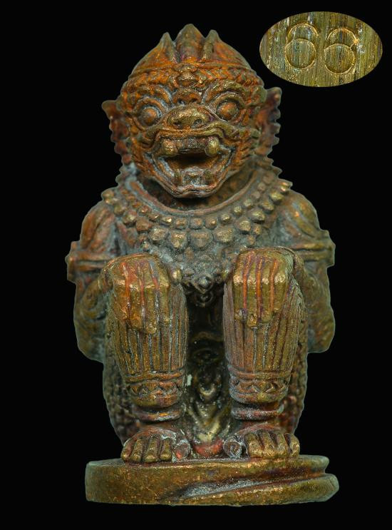 เลข 66. หนุมานชนะมาร เนื้อทองแดงผสมชนวน อุดผงพรายกุมาร |