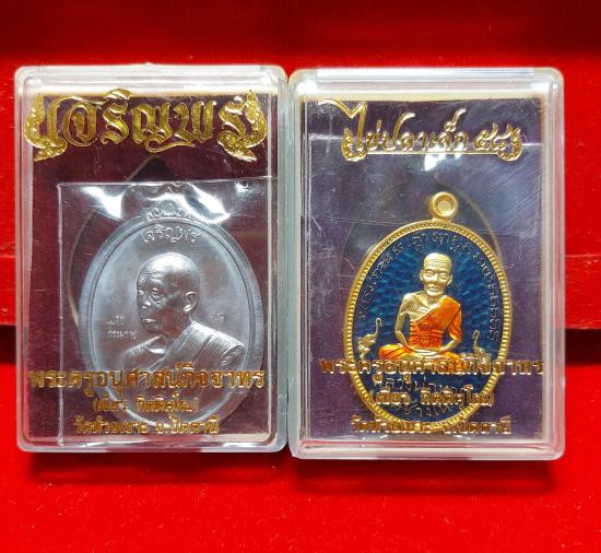 เหรียญหลวงปู่ทวด หลวงพ่อทอง รุ่นแซยิด 93 "เนื้อเงินหน้ากากทองคำหลังทองคำ" |