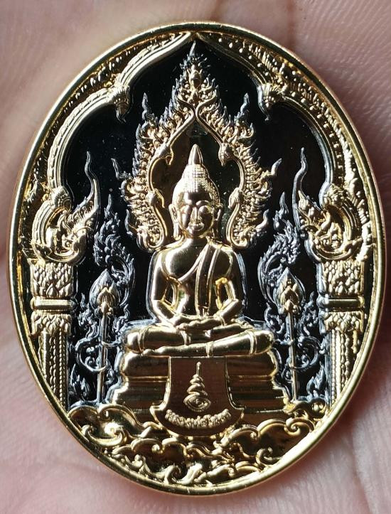 พระพุทธชินราชหล่อลอยองค์ รุ่น "ชินราชจันทร์เพ็ญ" เนื้อบรอนซ์นอกชุบทอง (กรรมการ) พิธีพุทธาภิเษกพระราชวังจันทน์ วันเป็งปุ๊ด |