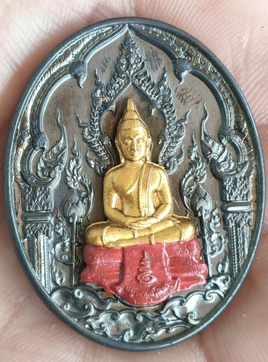 เหรียญหลวงพ่อโสธร เนื้อเงินลงยาราชาวดีหน้ากากทองคำ ปี2557 แดงเคาะแรก |