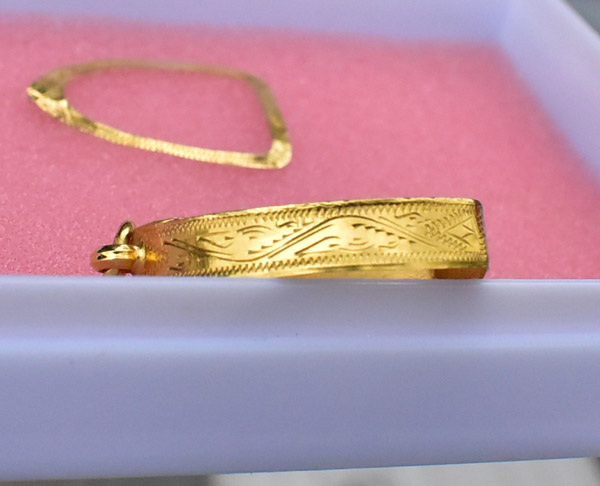 กรอบทอง 65.69 เปอร์เซนต์ จอในกว้าง 1.3 สูง 1.9 เซนติเมตร หนัก 1 กรัมถ้วน ผมแกะออกจากพระปิดตา