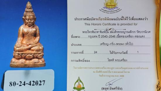 พระกริ่งไพรีพินาศพิมพ์ปั้ม สมเด็จพระญาณสังวร วัดบวรนิเวศ กรุงเทพ ปี2540 เนื้อทองแดง พร้อมใบประกาศติดรางวัลที่ 1,2,3งานนครราชสีมา จำนวน 3 องค์ครับจำนวน 3 ใบ