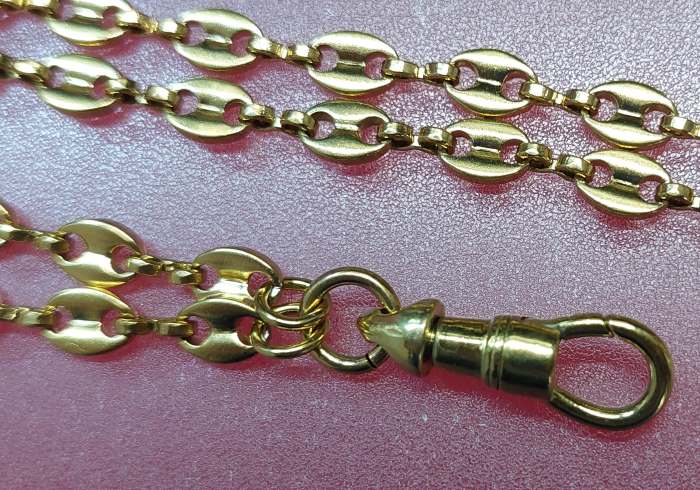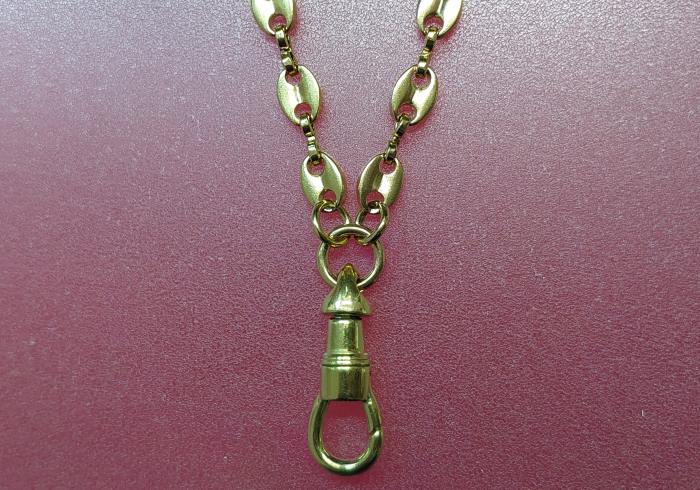 สร้อยสแตนเลสงานเลเซอร์ทอง ลายเมล็ดกาแฟ ยาว 26 นื้ว พร้อมสปริงก้ามปูสแตนเลสงานเลเซอร์ทองหมุนได้