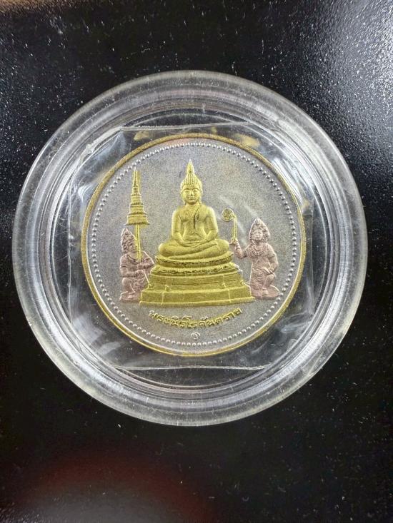 เคาะเดียวเบาๆ 400 เหรียญพระนิรโรคันตราย หลัง ท้าวหิรัญพนาสูร เนื้อโลหะชุบสามกษัตริย์ ที่ระลึก 102 ปีพระราชสมภพ พระมงกุฎเกล้าเจ้าอยู่หัว 2544 |