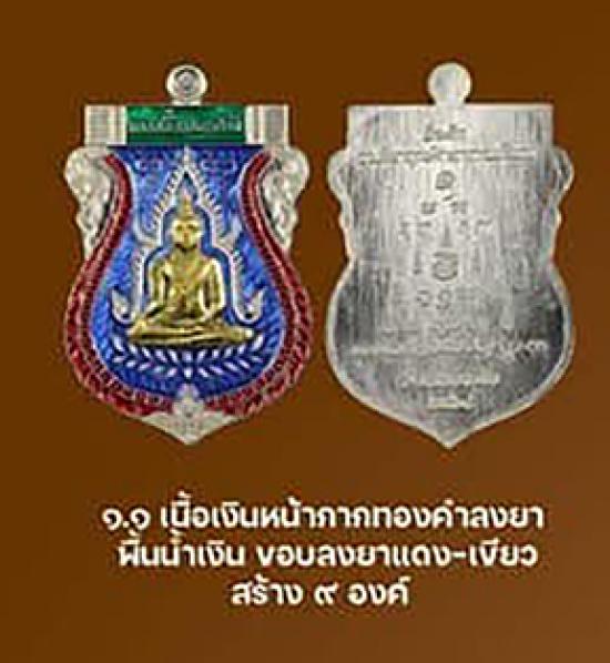 ( แชมป์ที่ 1 งานประกวดระยอง ) 1 ใน 9 เหรียญ ***เหรียญพระพุทธ ชินราช ที่ระลึกวางศิลาฤกษ์ เนื้อเงินหน้ากากทองคำ ลงยาพื้นน้ำเงิน ขอบลงยาแดงเขียว หมายเลข 2 สร้าง 9 เหรียญ หลวงพ่อทองสุข วัดหนองฆ้อ ระยอง ป |