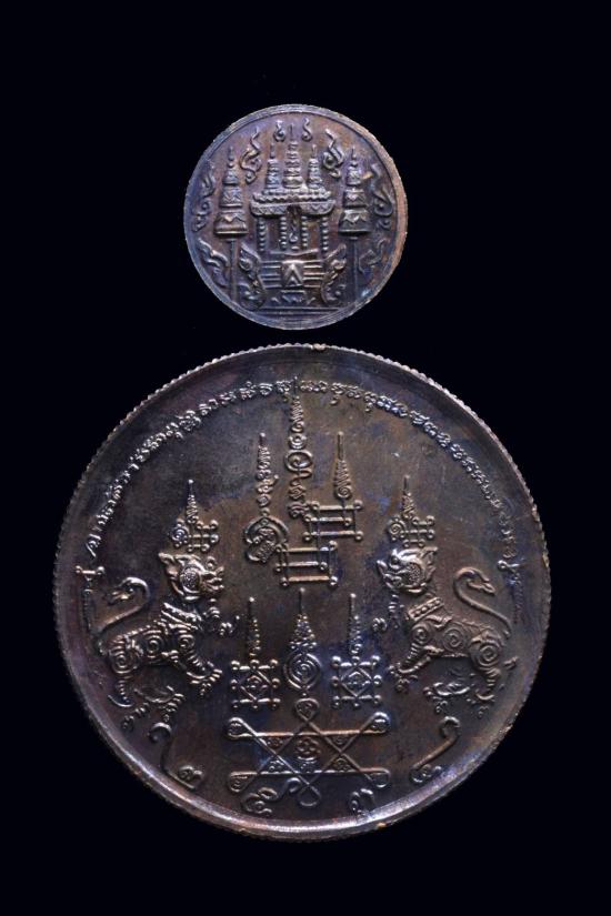 วัดใจ 490. เหรียญกลมสีหบรรลือ หลวงพ่อสมภพ พิมพ์กลาง ขอบสตางค์ วัดสาลีโข ปี 2534 + เหรียญกลมเล็ก สภาพสวย |