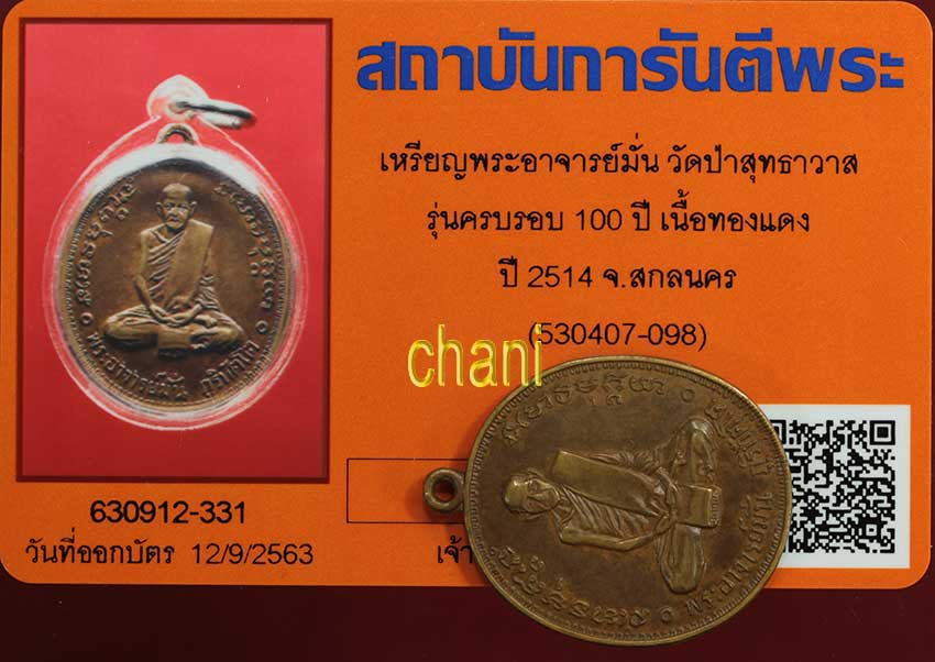 เหรียญ พระอาจารย์มั่น วัดป่าสุทธาวาส รุ่นครบรอบ100ปี วงเดือน นิยม เนื้อทองแดง ปี2514 จ.สกลนคร สภาพสวยเก่าเดิมๆ พร้อมบัตรรับรองพระแท้จากจีพระ อุ่นใจได้ค่ะ