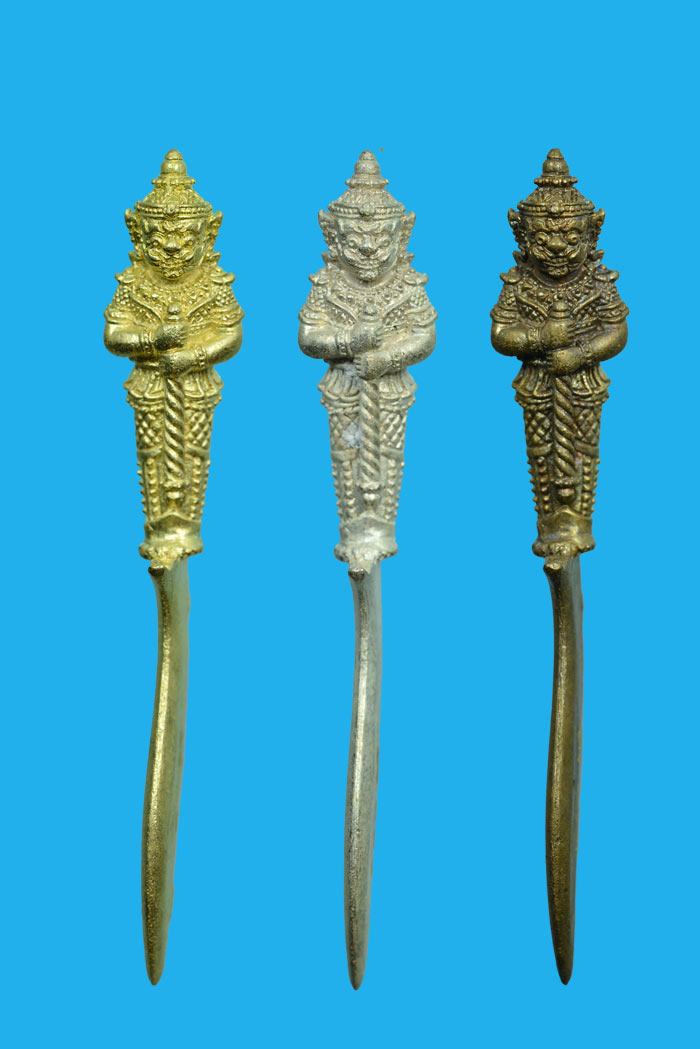 ๓ เล่ม เนื้อชนวน เนื้อชนวนสำริดเงิน เนื้อชนวนผิวรุ้ง มีดท้าวเวสสุสวรรณ หลวงปู่ณรงค์ สาโม วัดมงคลนิมตบ้านโนนเมือง อ.พยัคฆ์ภูมิพิสัย จ.มหาสารคาม ปี ๒๕๖๑ |