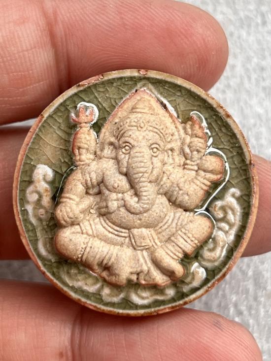 พระพิฆเนศ รุ่นบังเกิดทรัพย์ เนื้อสังคโลกสุโขทัย พิธีเทวาภิเษก ปราสาทพนมรุ้ง ปี 49 หลวงปู่หงษ์ พรหมปัญโญ ปลุกเสก |