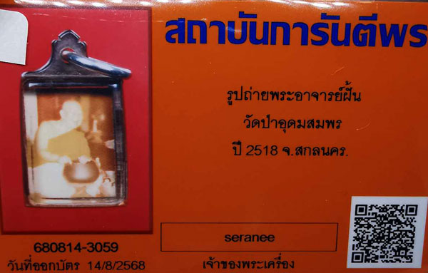 รูปถ่าย(สองหน้า)พระอาจารย์ฝั้น วัดป่าอุดมสมพร ปี2518 จ.สกลนคร + บัตรG-pra |