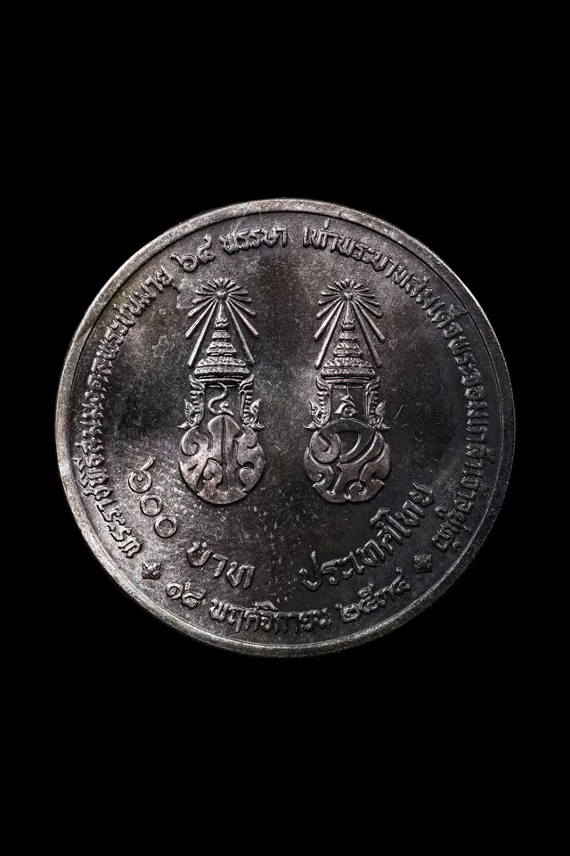เหรียญเงิน 600 บาท พระราชพิธีสมมงคลพระชนมายุ 64พรรษา เท่าพระบาทสมเด็จพระจอมเกล้าเจ้าอยู่หัว