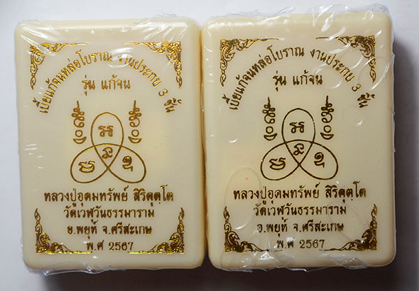 เบี้ยแก้หล่อโบราณ ภายในบรรจุมวลสารผงงา ช้ า ง รุ่น แก้จน 67 หลวงปู่อุดมทรัพย์ วัดเวฬุวันธรรมาราม อำเภอพยุห์ จังหวัดศรีสะเกษ 2 กล่อง |