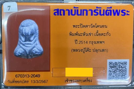 พระปิดตาวัดโคนอน พิมพ์นะหัวเข่า เนื้อตะกั่ว ปี 14 |