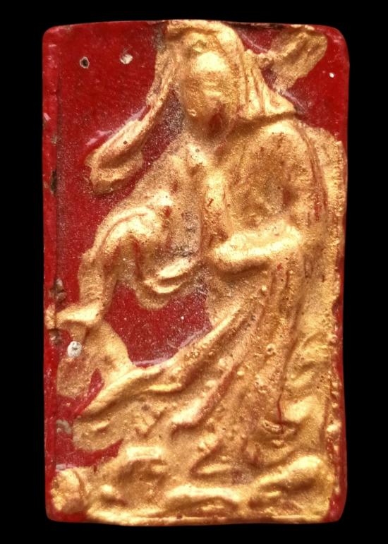 วัดใจ พระเนื้อดินเผา เจ้าแม่กวนอิม หลังหนังสือจีน ลงชาดปิดทอง (พ่อท่านคล้าย ปลุกเสก ปี 2500 |