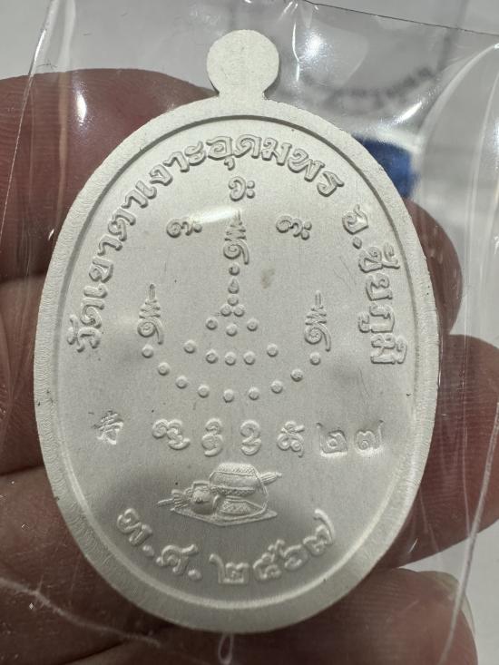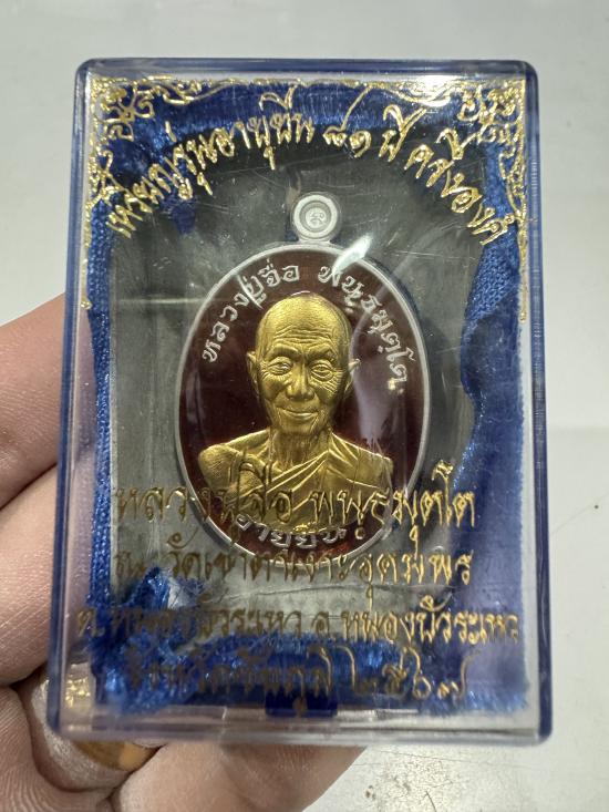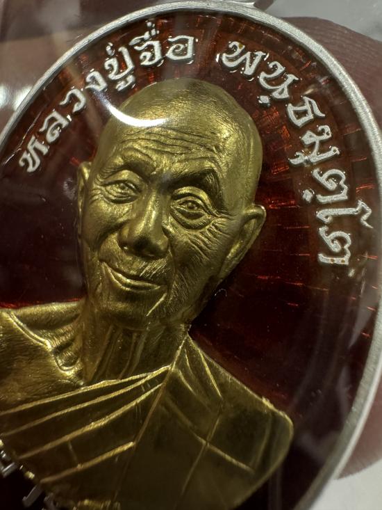 หลวงปู่จื่อ วัดเขาตาเงาะฯ เหรียญอายุยืน81ปี ปี2567 เนื้อเงิน ลงยาสีแดง หน้ากากทองคำ no.27 มีกล่อง