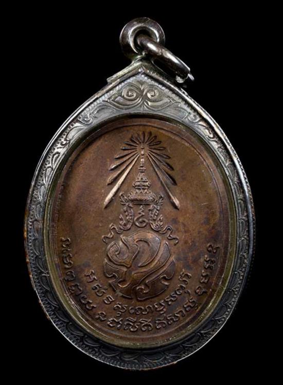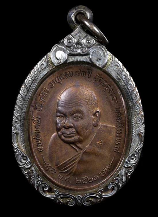 เหรียญพ่อท่านคลิ้ง วัดถลุงทอง พิมพ์หลัง ภปร ชฏาแตก เนื้อทองแดง ปี2521 จ. นครศรีธรรมราช เลี่ยมกรอบเงิน