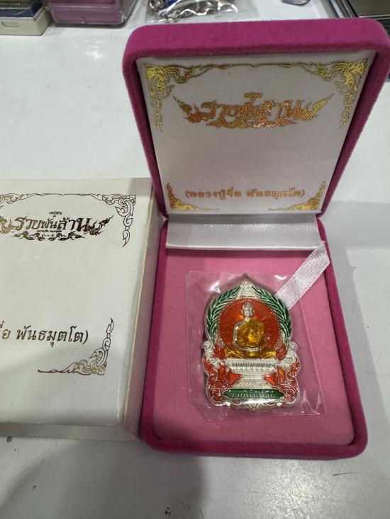 หลวงปู่จื่อ วัดเขาตาเงาะฯ เหรียญนั่งพานรวยพันล้าน ปี2564 เนื้อเงิน ลงยา no.45 มีกล่อง