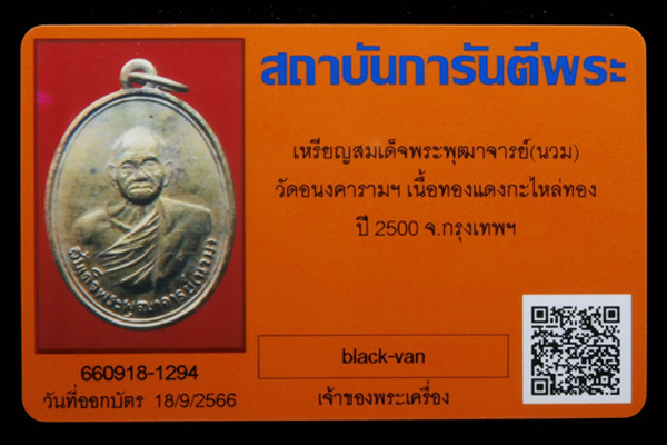 เหรียญสมเด็จ พระพุฒาจารย์(นวม) วัดอนงคาราม จ.กรุงเทพฯ ปี 2500 กรุงเทพฯ พร้อมบัตรรับรอง G-pra ครับ |