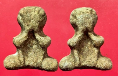 พระปิดตาตะพาบน้ำ เนื้อผงโรยอิฐเชิงตะกอน หลังฝังอิฐสถูปเจดีย์บูรพาจารย์วัดเขาอ้อ จำนวน 2 องค์ สร้างน้อย หายาก |