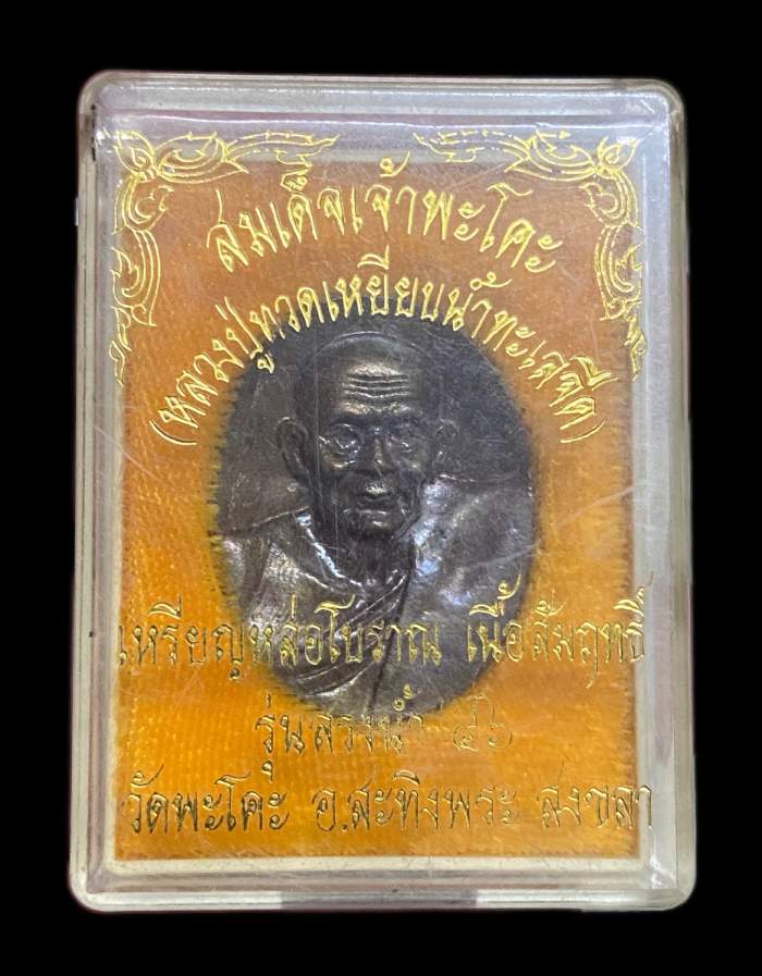 เหรียญหล่อโบราณ เนื้อสัมฤทธิ์ หลวงปู่ทวดเหยียบน้ำทะเลจืด สมเด็จเจ้าพะโคะ วัดพะโคะ จ.สงขลา รุ่น สรงน้ำ ปี 2546 |