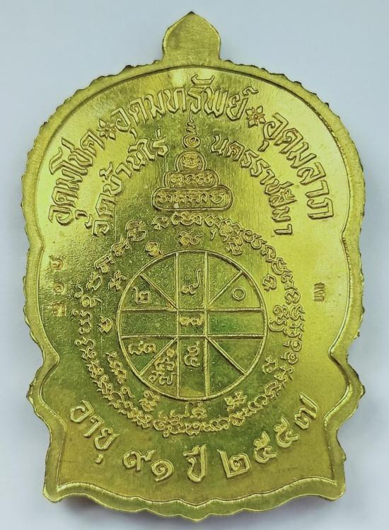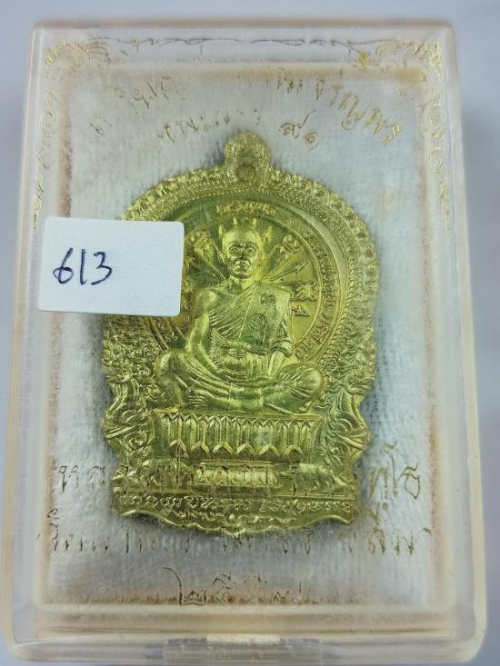 เหรียญนั่งพาน ชนะมาร91 หลวงพ่อคูณ วัดบ้านไร่ เนื้อทองฝาบาตร(ตอกแจก หลังยันต์) เบอร์ 613 พร้อมกล่องครับ