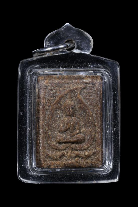 องค์นี้พิมพ์คะแนนของขวัญ พิมพ์ใบโพธิ์องค์พระประทานพร ฐานนกสาริกาคู่ องค์หนา ขนาดประมารพระผงของขวัญวัดปากน้ำ หรือ พระผงวัดเกาะจันทร์ (สูง 2.2 ซม.).. สร้างประมาณปี๒๕๒๐ ผงวิเศษผสมว่านนานาชนิด ชานหมาก จีวร และเส้นเกศาสวยเดิมๆ มีน้ำมันตังอิ๊วเป็นตัวประสานหยาบๆ เนื้อหาจึงหยาบร่วนไม่แน่นตัว คล้ายๆพระผงวัดเกาะจันทร์ องค์นี้สภาพสวยมาก เดิมๆ รายละเอียดคมชัดลึก เนื้อจัดด้วยมวลสาร ไม่แตกไม่หักไม่ซ่อม สภาพนี้หายากแล้ว